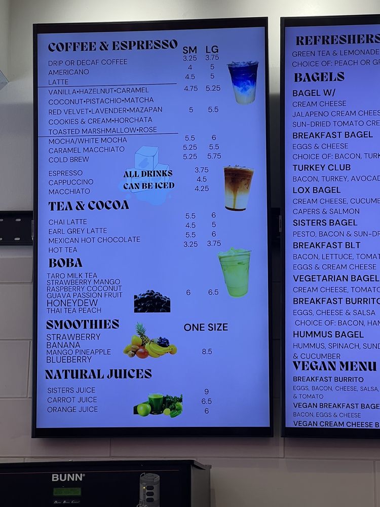 Welcome to Sisters Coffee Shop San Francisco, where vibrant flavors meet a charming ambiance. Located at 506 Castro St, this delightful café offers a thoughtfully curated menu featuring an array of bagels, sandwiches, and innovative drinks. The bagels, like the Sun Dried Tomato with Cream Cheese, stand out, while the hearty Breakfast BLT is perfect for those seeking a savory meal. Don't miss the delightful Sisters Sandwich, layered with chicken, cheeses, and jalapeños, or the creamy Avocado Toast, made even heartier with the addition of bacon or a fried egg.